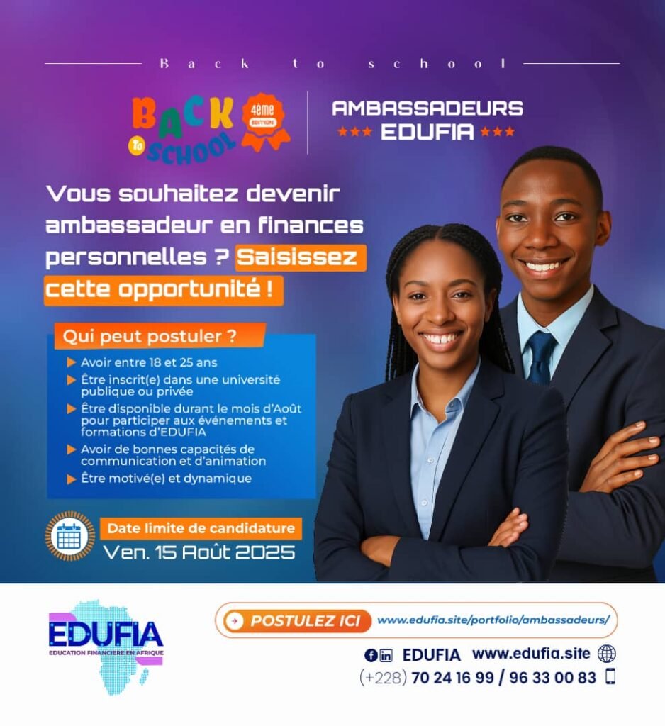 Devenez un porte-parole engagé et enthousiaste de l’éducation financière en Afrique et contribuez à la promotion des valeurs d’EDUFIA auprès des étudiants.
